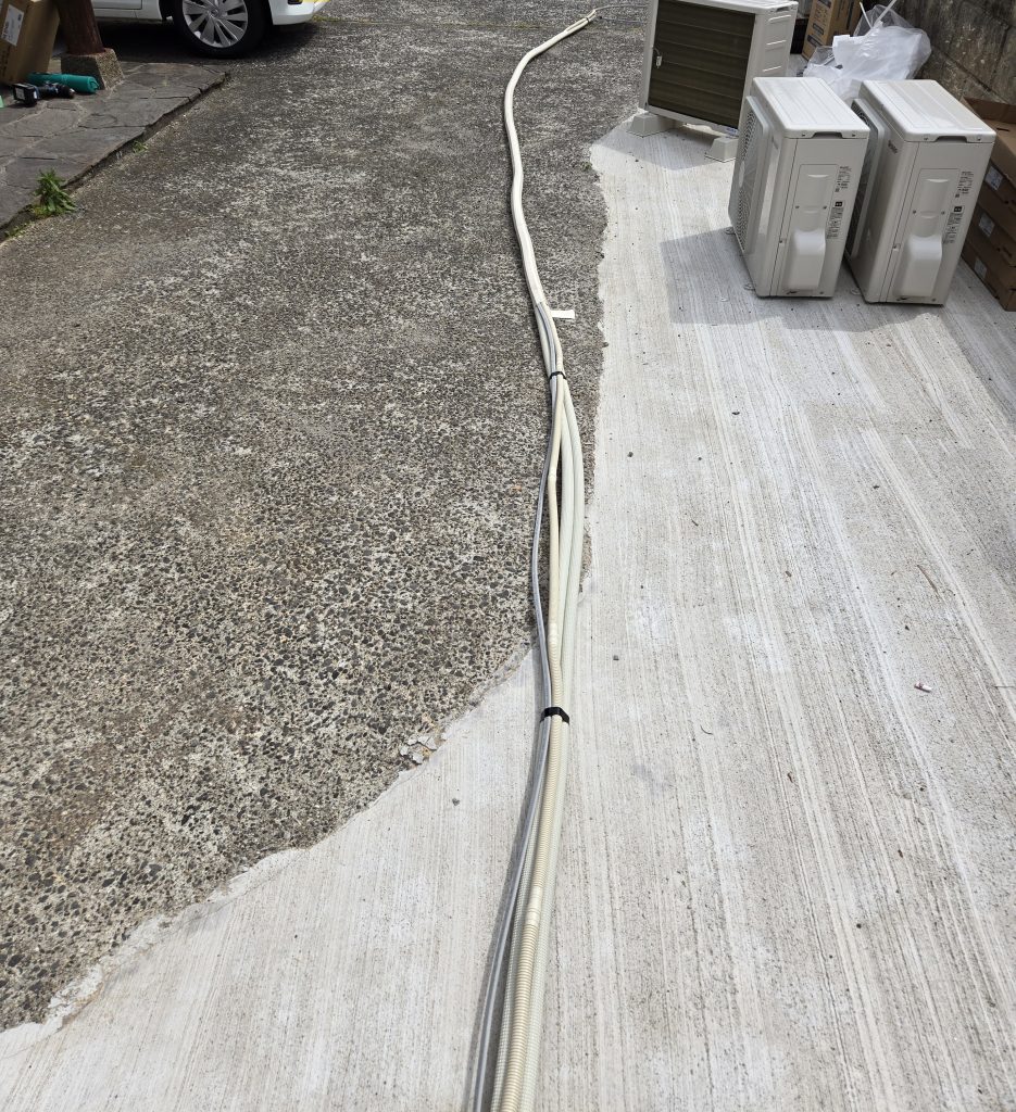 ルームクーラー設置及び容量アップに伴う電気設備工事 施工事例 2025.05.20 令和7年5月(由布市)某飲食店社員寮の電気工事です。新入社員を迎える為、全室にエアコンを設置し電気容量をアップしました。