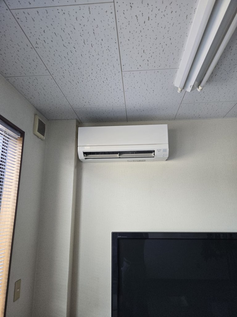 某企業の事務所の天井埋込エアコンとルームエアコンの設置工事をしました。