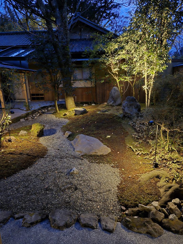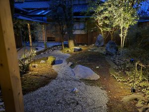 庭園ライトアップ工事 施工事例 2025.01.13 令和7年1月(由布市)某老舗旅館の庭園ライトアップ工事を行いました。離れの部屋から眺める庭園が、夜になると昼にも増して趣のある癒しの空間になります。