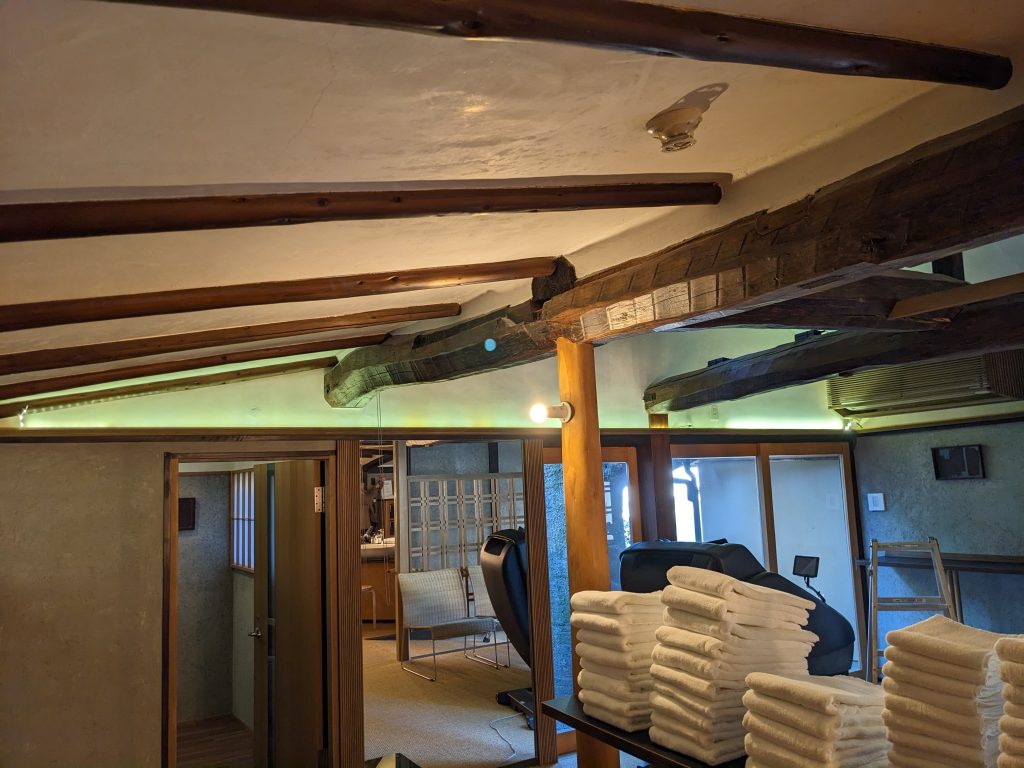 令和7年1月(由布市)老舗旅館の浴室の間接照明を全面取替えました。所々照明が切れている箇所があったので、全て取り替える事にしたそうです。写真は昼間に撮影したものなので伝わりにくいと思いますが、夜になると温かな灯でホッと一息できる浴室にピッタリの雰囲気になります。近頃は、両面テープで貼り付けてコンセントに差し込むだけのテープライトが手ごろな値段で入手できるので、DIYで間接照明を取付ける方もいらっしゃるかと思います。ご家庭の一角に間接照明があるとぐんとおしゃれになりますね。今回は、テープではなくしっかりしたタイプのライトをスイッチにつなぐ設置をしました。浴室に併設されたトイレにも設置ました。