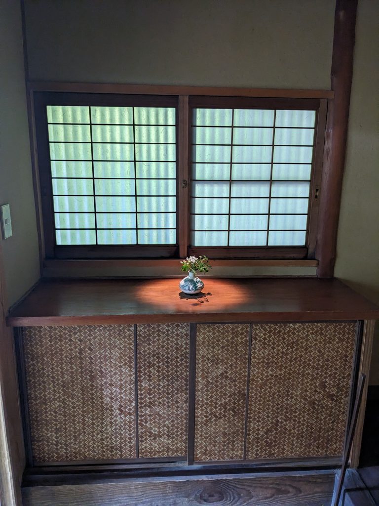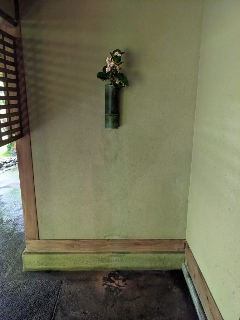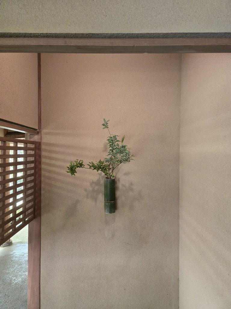 令和7年5月(由布市)旅館の各室に飾る花を照らす照明工事を行いました。既存の照明は、位置がずれていたり、真正面から明々と照らすものだったので、トーンを落としてスポット的に照らしてほしいとのご依頼でした。