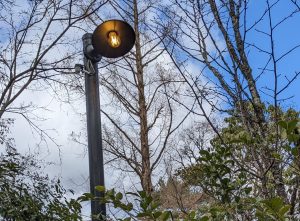 施工事例令和6年12月(由布市)某老舗旅館の通路にある街路灯を付け替えました。もともとあったものとよく似たレトロな雰囲気の照明器具を探すことができました。後ろの茅葺屋根ともマッチしていて、ノスタルジックな温かい灯に心癒されます。
