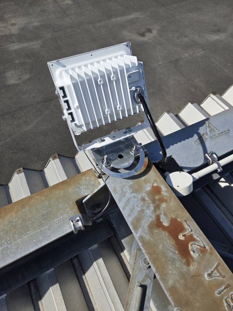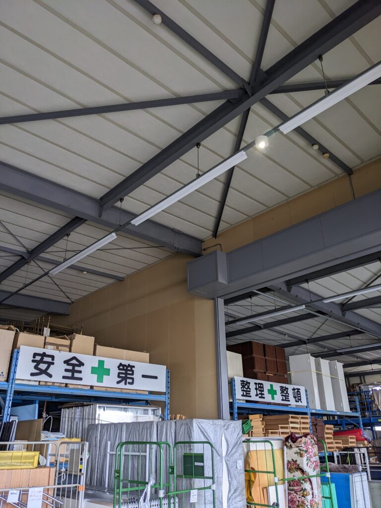 施工事例令和8年2月(福岡県朝倉市)初めての県外工事です。倉庫内をLED照明に取替え、屋上に投光器を新設しました。2月7日(土)8日(日)と28日(土)3月1日(日)の4日間、泊りがけで行いました。協力してくださる同業者の方々も一緒でしたので、夜はみんなで食事をしながら楽しく過ごすことができました。