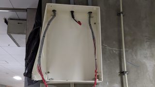 令和6年11月(別府市)某企業の分電盤ボックス破損のため、新しいボックスの取付工事を行いました。